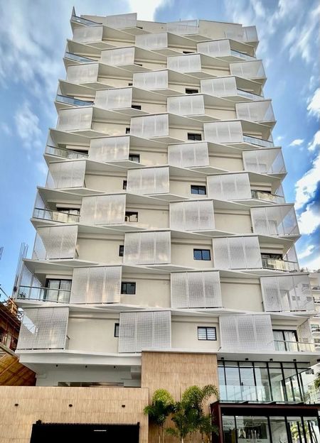 La torre donde se encuentra este apartamento tiene un novedoso diseño que rompe los esquemas de construcción para asegurar tu inversión a través del tiempo. La integración con las aceras le da mayor impacto y sobriedad, mientras que la fachada conformada por paneles de aluminio microperforados brinda protección solar del interior según su orientación y permite un flujo moderado de iluminación y aire natural.