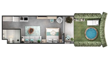 Hermoso apartamento de 1 dormitorio con opción a elegir vista a la piscina, al jardín o al parque.