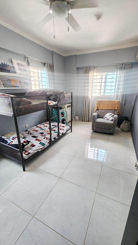 Cuenta con 165.72 m², 3 habitaciones, 2.5 Baños, amplia Sala, Comedor, Balcón Integrado con amplios ventanales, Cocina con desayunador, Cuarto de Servicio, área lavado, 2 parqueos paralelos. Con excelente distribución y espacios. La torre cuenta con lobby, portero y ascensor. Paga RD$9,800 de mantenimiento común.