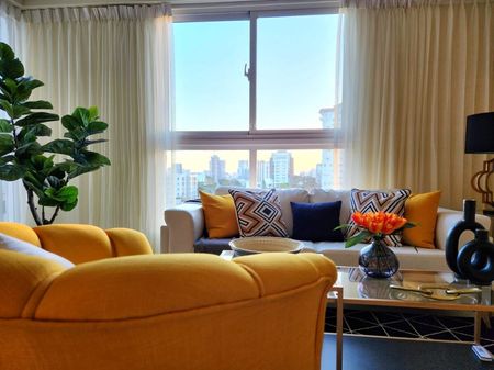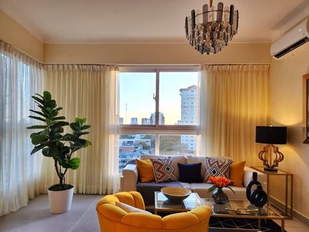 Amplio y Moderno apartamento en ALQUILER AMUEBLADO en una de las mejores zonas de la ESPERILLA, cuenta con 1 habitación con su baño y W-C, sala, comedor, cocina, concepto abierto con desayunador, Balcón integrado con ventanales de piso a techo, bien,1 parqueo techado. Apartamento claro y ventilado.