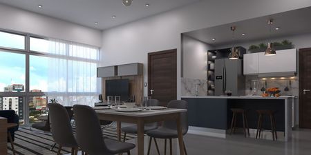 • Apartamentos 60 mts2: Habitación Principal con Closet y Baño, Sala, Comedor, Cocina, Área de Lavado.