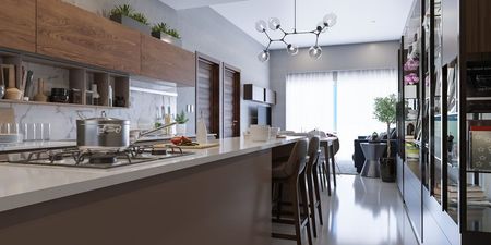 • Apartamento 100 mts2: Habitación Principal con Closet y Baño, 1 Habitación Secundaria con Closet y Baño, Baño de Visitas, Sala, Comedor, Balcón, Cocina, Área de Lavado, Habitación y Baño de Servicio.