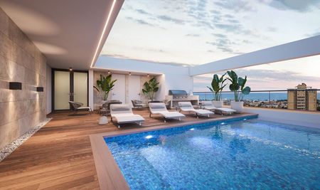 Impresionantes áreas sociales en el último nivel, con piscina, sauna, área de juegos para niños y salón multiusos.