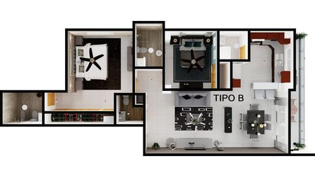 Este modelo cuenta con un metraje idóneo para tener buena distribución y un buen precio, que también permite tener una vida familiar y cómoda dentro de los apartamentos.