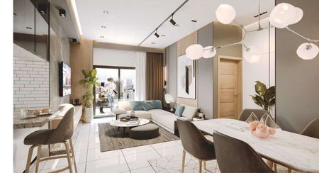 Te ofrece un amplio espacio de 62 metros cuadrados para que puedas disfrutar de una distribución cómoda y funcional. El apartamento cuenta con una espaciosa sala de estar y un comedor, perfectos para recibir a tus invitados y disfrutar de momentos especiales en un ambiente acogedor. La cocina está diseñada con modernos muebles modulares que brindan una estética elegante y funcionalidad. Podrás preparar tus comidas con comodidad y estilo.