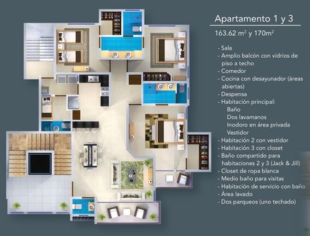 vanguardista con áreas de apartamentos desde 163m² a 286m² y más de 630m² de área social.