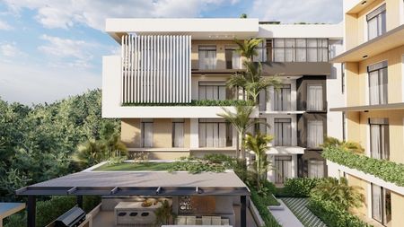 A modern residential development featuring luxurious apartments in Ciudad Las Canas, with exclusive access to Avalon Beach Club in Cap Cana.