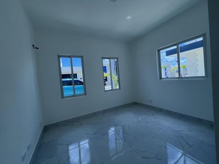 Casa lista en Venta en Punta Cana, a 6 minutos de Downtown. Espacios acogedores e integrados, buenas terminaciones y diseño moderno. Características: 2 habitaciones 2 banos Marquesina Patio Cocina Área de Comedor Sala Área de lavado.