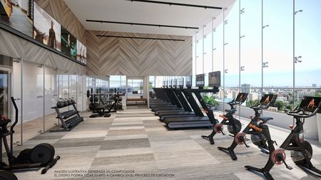 Gimnasio panorámico, climatizado y equipado con maquinaria profesional.