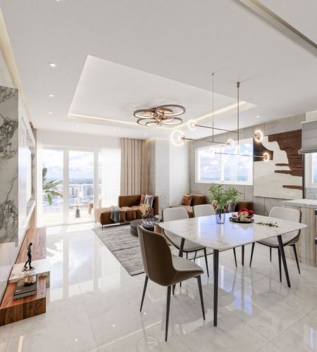La terminación de estos apartamentos es de alta calidad, con cocinas modulares equipadas con topes importados. Además pisos en mármol y/o porcelanato importado tipo madera para brindar una sensación de lujo y elegancia.