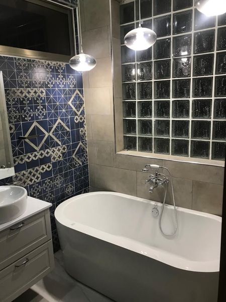 Con su baño.