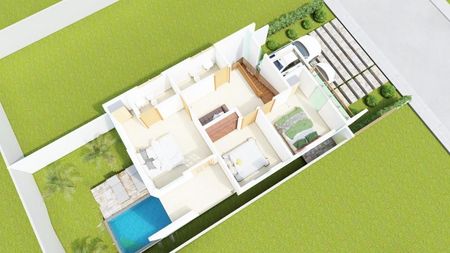 Complejo de (8) villas de 145mts de construcción y 235mts de terreno, con la siguiente distribución: 3 habitaciones, 2.5 baños, marquesina doble, sala comedor, cocina, área de lavado, terraza amplia a la piscina, habitación principal con balcón a la piscina, frente amplio con área verde, patio con piscina.