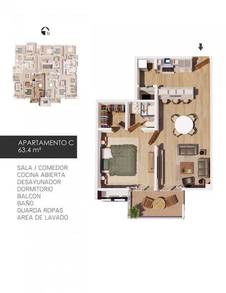 Edificio residencial con un lenguaje arquitectónico sencillo y transparente en lo estructural con espacios multifuncionales en una volumetría esbelta.