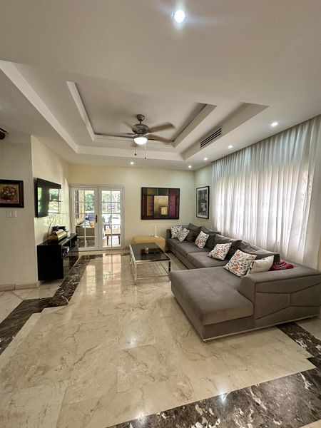 Al ingresar, te recibirán amplios espacios llenos de luz natural que realzan la sofisticada sala principal, ideal para reuniones familiares o momentos de relajación. La casa cuenta con dos family rooms, uno en cada nivel, perfectos para disfrutar de un espacio íntimo para entretenimiento o como área de descanso adicional.