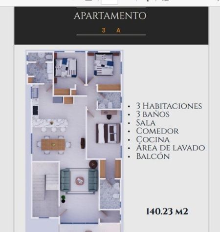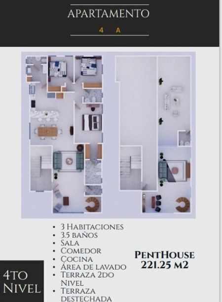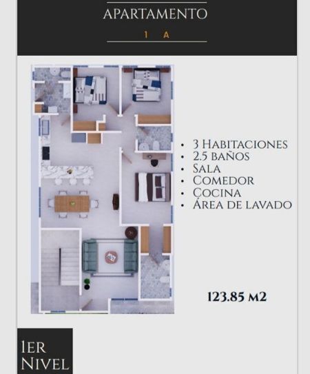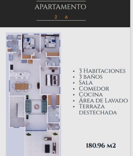 •3 baños (Apto 1A 2.5 baños)