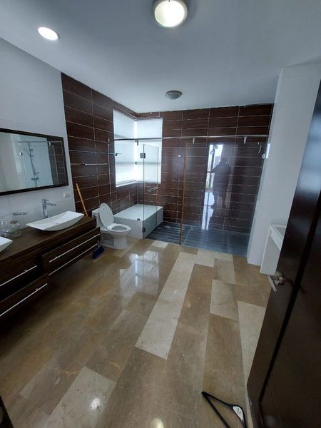 CONSTA DE 3 HABITACIONES CON SUS BAÑOS. W/CLOSET, LOCKER, 3 PARQUEOS AMPLIOS, ESTUDIO, AMPLIA COCINA, DUCTO DE BASURA, BAÑO DE VISITA, AREA DE LAVADO Y SERVICIO CON SU BAÑO. DOS ASCENSORES, BALCON, AIRE ACONDICIONADO INSTALADO, PISO DE MARMOL.