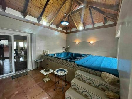 Terraza techada y destechada y su jacuzzi.