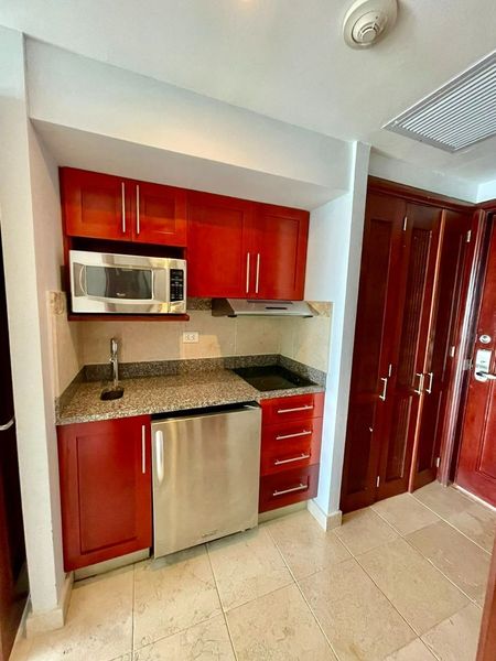 Incluida línea blanca: Nevera, estufa, extractor, aires acondicionados y lavadora/secadora.