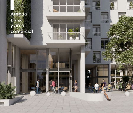 Cuenta con plaza comercial, áreas verdes y espacios públicos pensados para el esparcimiento, cafés y restaurantes.