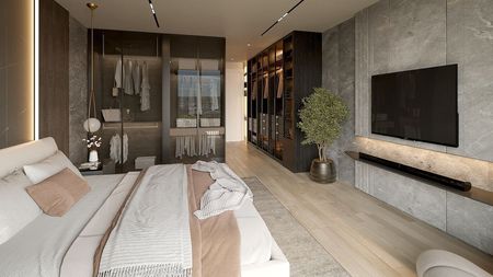 • Distribución: 3 habitaciones + estudio, 3.5 baños, habitación de servicio