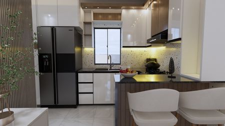 Puertas y cocina en madera preciosa Distribución: