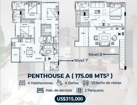 Venta de proyecto de apartamento en Colinas de los rios, torre de 8 niveles, Apartamentos de 2 y 3 habitaciones, PENTHOUSE de 3 y 4 habitaciones.
