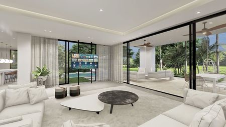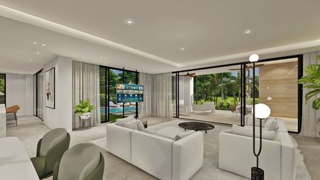 • Sala con vista tanto al área de terraza como de piscina.
