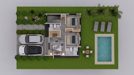 El conjunto cuenta con solares de 231 y 253 m2, villas de 140 m2, acceso asfaltado, áreas verdes y muchas comodidades. Las villas disponen de un primer nivel con medio baño, sala, comedor, cocina, área de lavado, dos parqueos y piscina y jardín. El segundo nivel cuenta con una habitación principal con baño privado, walking closet y terraza, y dos habitaciones secundarias con closet y baño.