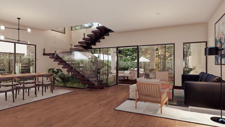 • Área 153.52 m2, Sala, Comedor, Amplia Terraza Techada, Jardines interiores, Jacuzzi, Patio, Jardín, Cocina Principal, Cocina Caliente, Vestíbulo, Escalera vista, Desayunador, Baño para Visitas, Habitación de Servicio con baño, Área de Lavado, 2 estacionamientos Exclusivos